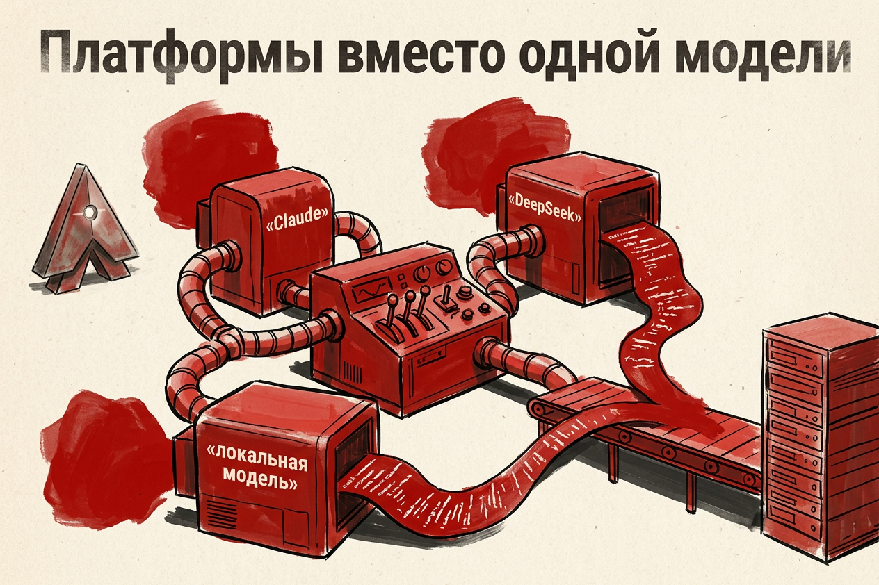 Теперь ценность — в управлении: выбрать модель под задачу, встроить её в процессы, контролировать результат. Например, платформы переключают модели вроде Claude или DeepSeek в зависимости от сценария и требований качеству или стоимости.